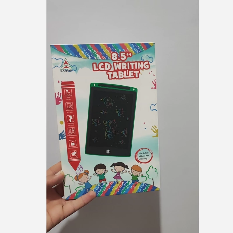 دارای یه قلم مغناطیسی که میتونی کلی نقاشی بکشی و تمرینات درسی انجام بدی بعد همه رو با یک دکمه پاک کنی . صفحه رنگی هست